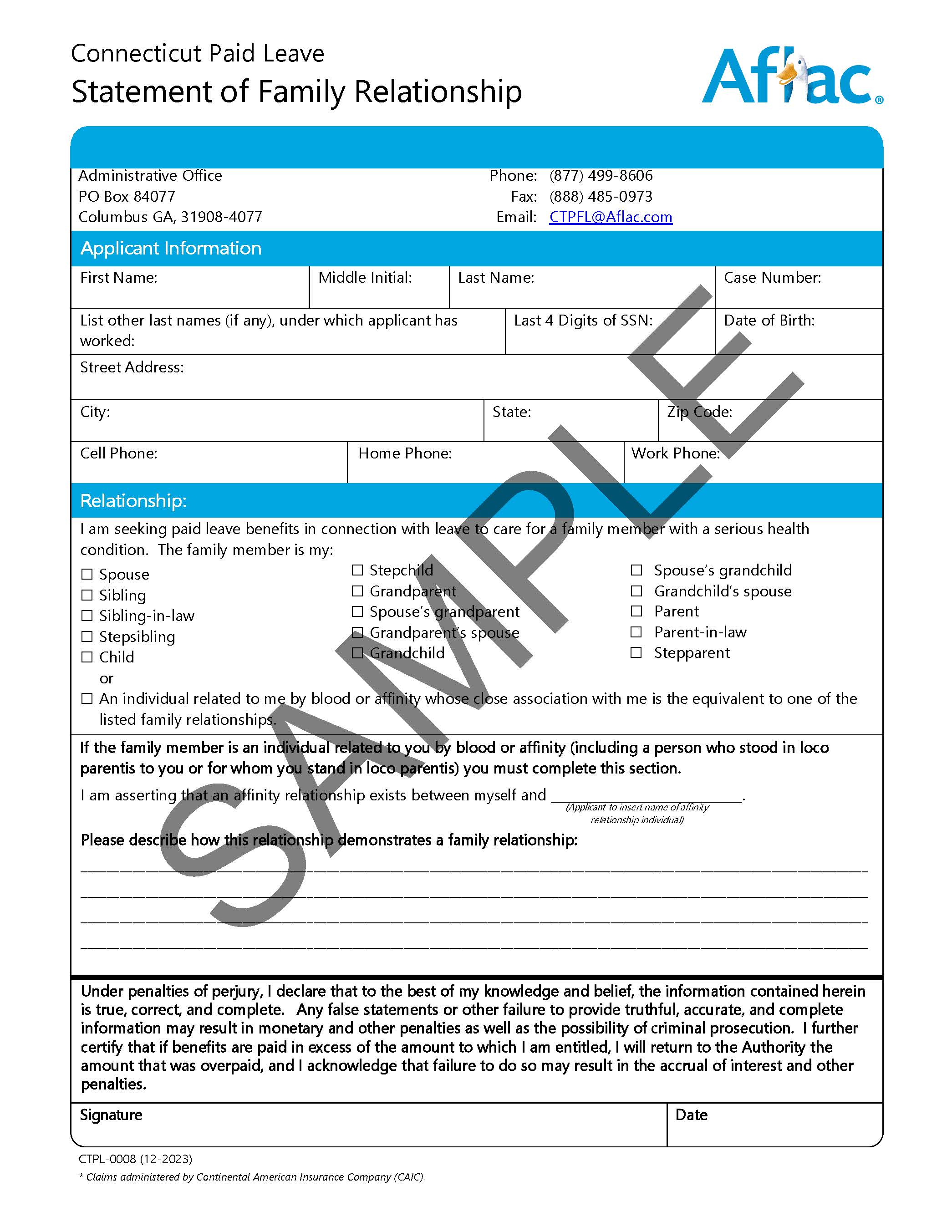 Your Notice of Application will include the required documents, many of which are pre-filled with your name and case number. If you lost these forms, log into the CT Paid Leave Aflac Portal to download your Notice of Application with the pre-filled forms.